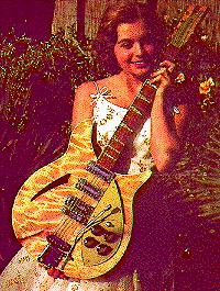 - 1964 to 1970 Deluxe Trim: Sparkle crushed pearl fingerboard inlays.